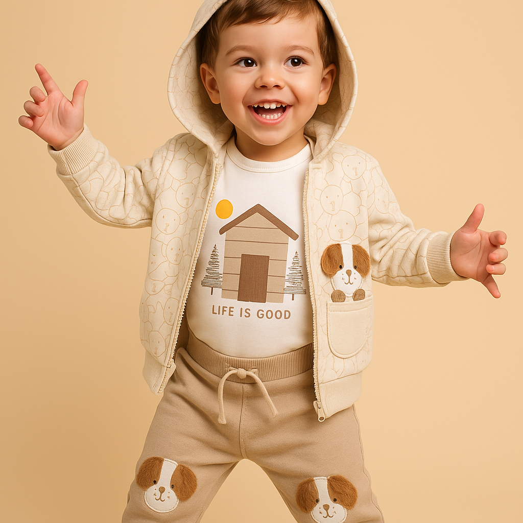 این ست کامل و همهکاره برای پسربچهها طراحی شده تا هم استایل اسپرت و شیکی داشته باشن و هم در روزهای سرد گرم بمونن. جنس نخپنبهای ضدحساسیت باعث میشه کودک حتی بعد از ساعتها استفاده احساس راحتی کنه.