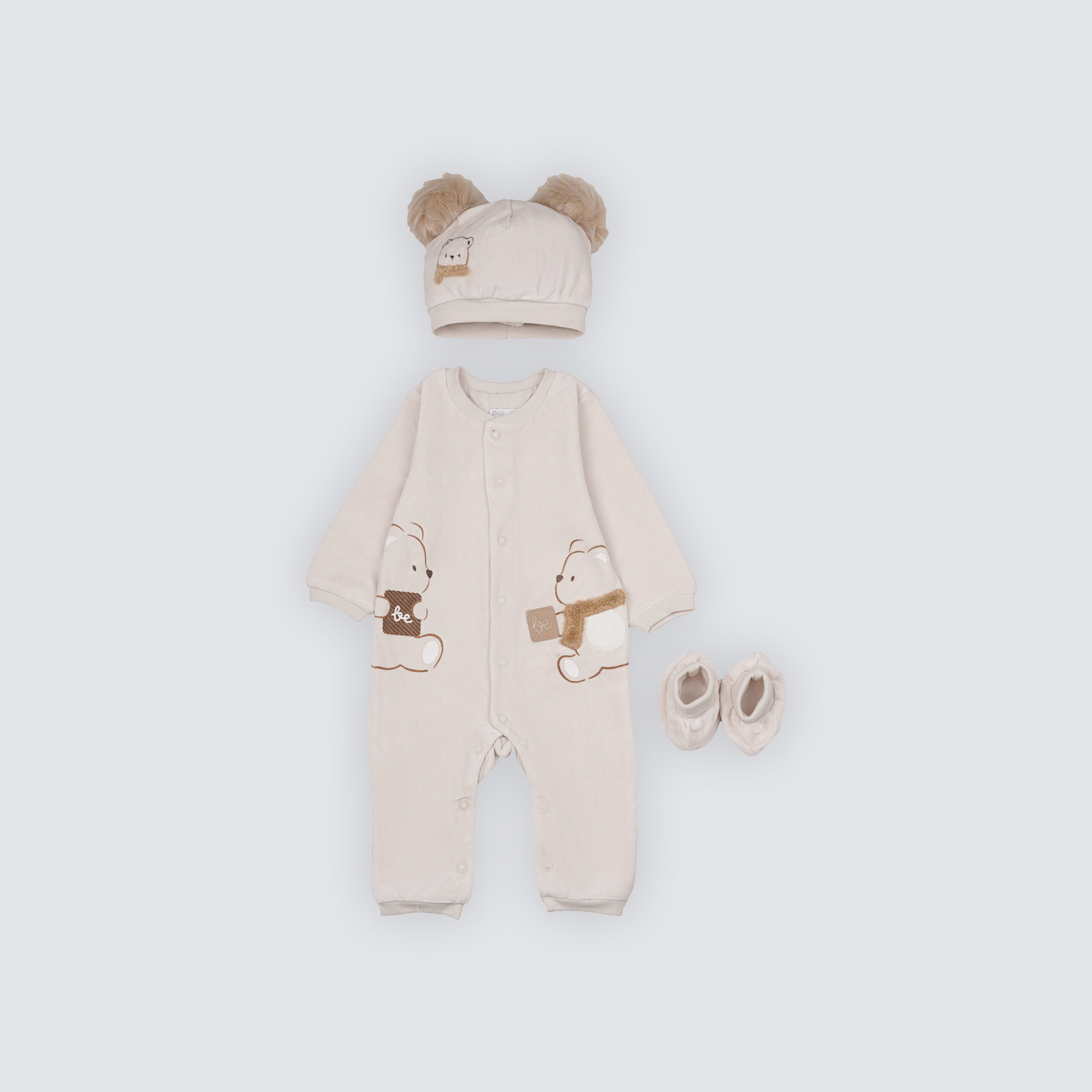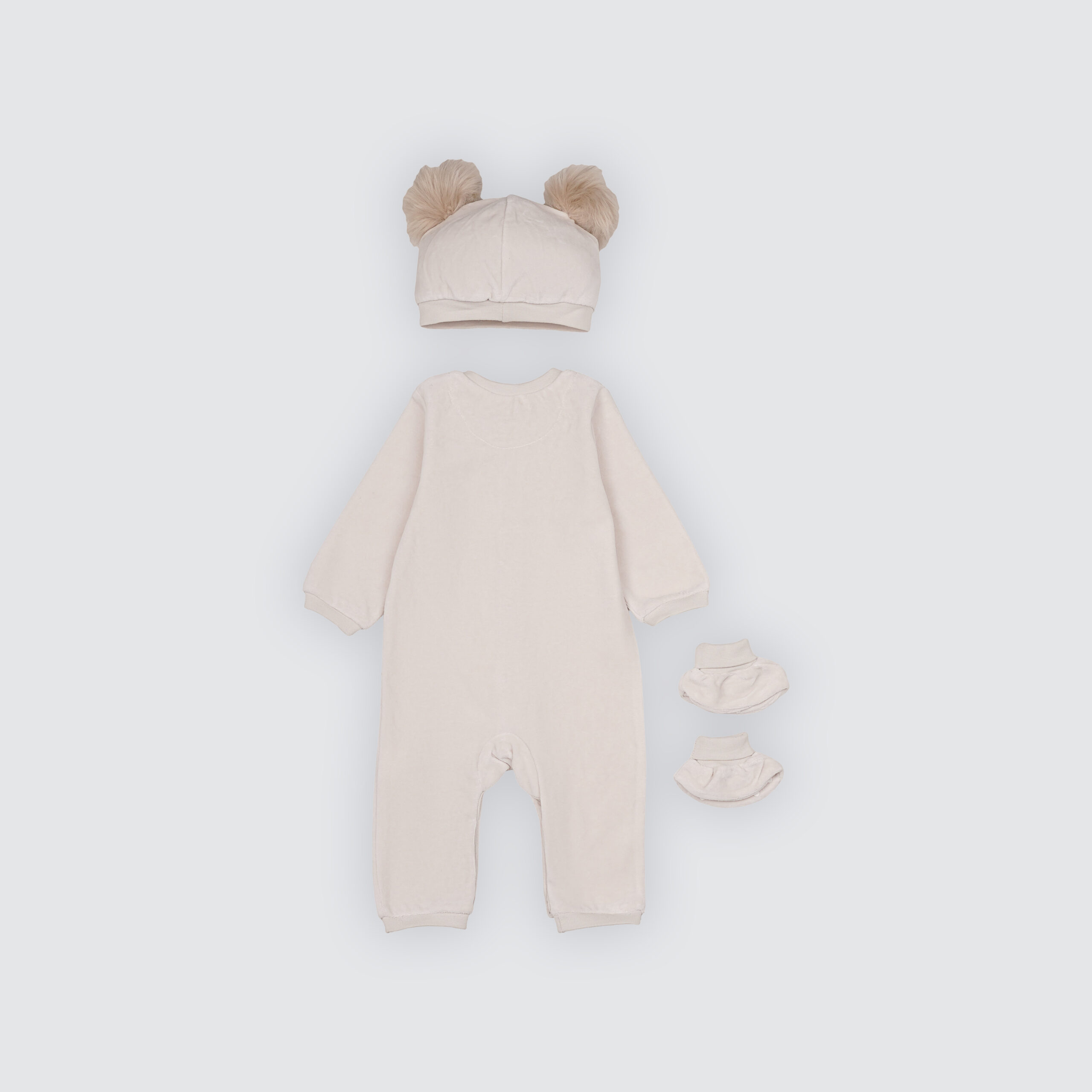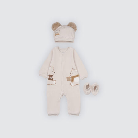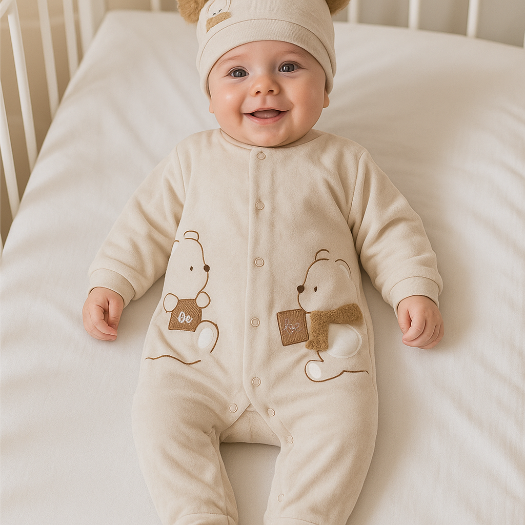 پارچهی مخملی نرم و لطیف، پوست کودک رو نوازش میکنه و در روزهای خنک و سرد گرما رو حفظ میکنه. طراحی سرهمی باعث میشه کل بدن کودک پوشیده و محافظتشده باشه.