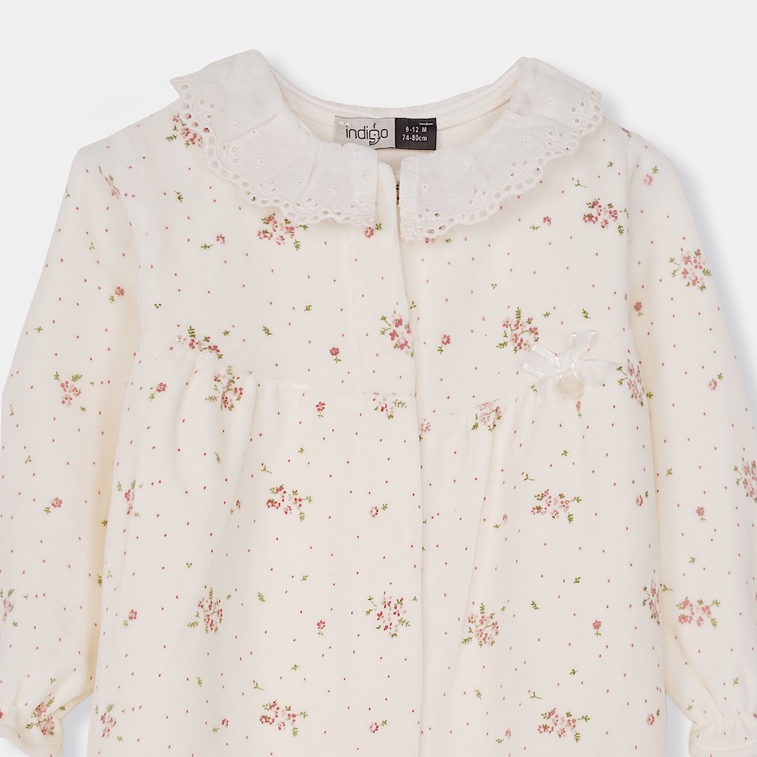 سرهمی و کلاه دخترانه پرنسا برند ایندیگو با طراحی ظریف و پرنسسی 👑 برای کوچولوی شما انتخابی بینظیره. این لباس از نخ پنبه ۱۰۰٪ دوخته شده و نرمی و راحتی بالایی برای پوست لطیف کودک داره.