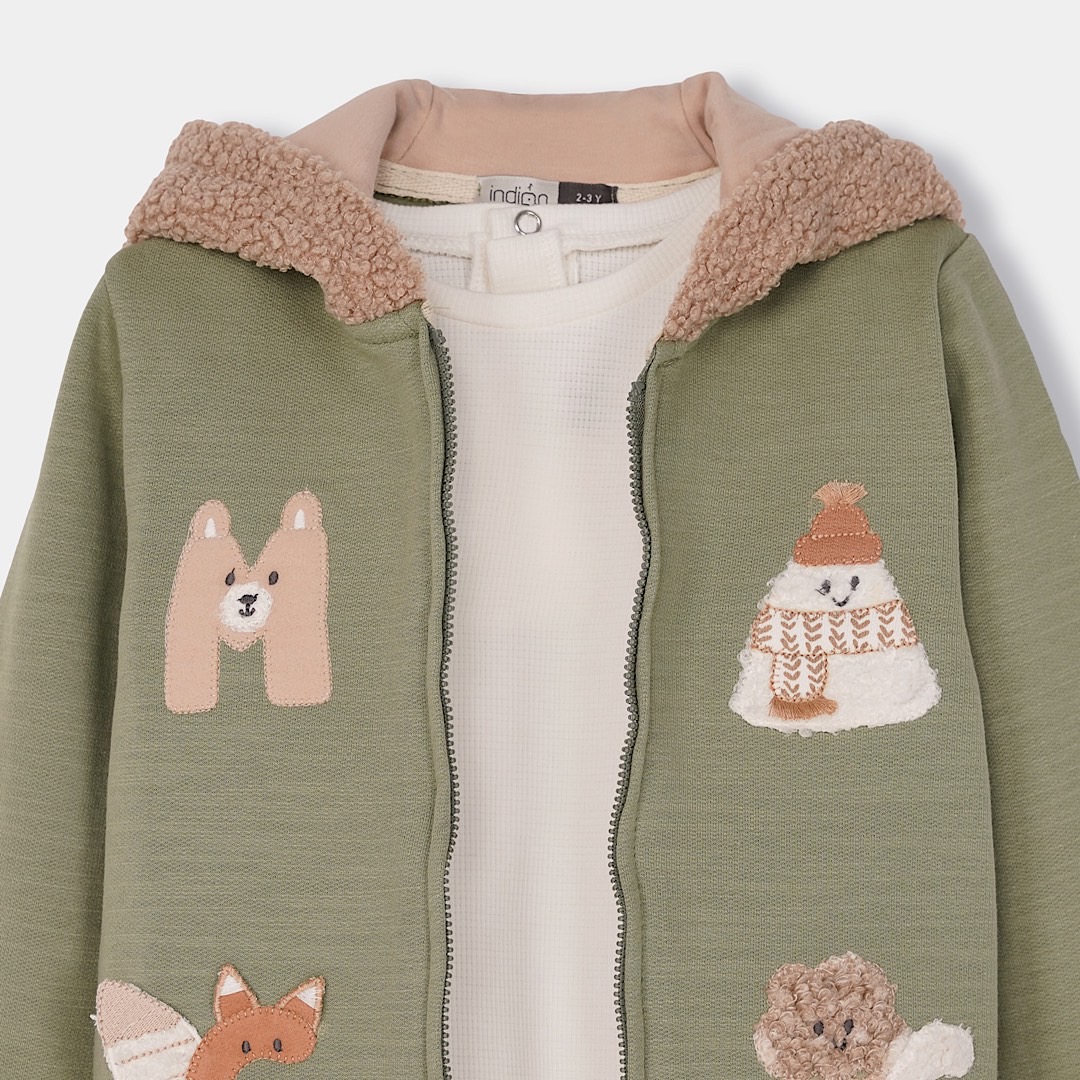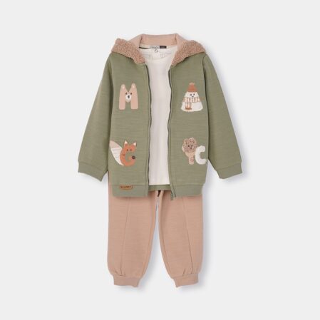 ست سهتیکه آلپ پسرانه از برند ایندیگو شامل سوئیشرت، بلوز و شلواره ⛰️💙. جنس این ست از نخ پنبه ۱۰۰٪ هست که راحتی و لطافت فوقالعادهای به کودک میده. طراحی اسپرت و شیکش برای بیرون رفتن و مهمونی عالیه.
