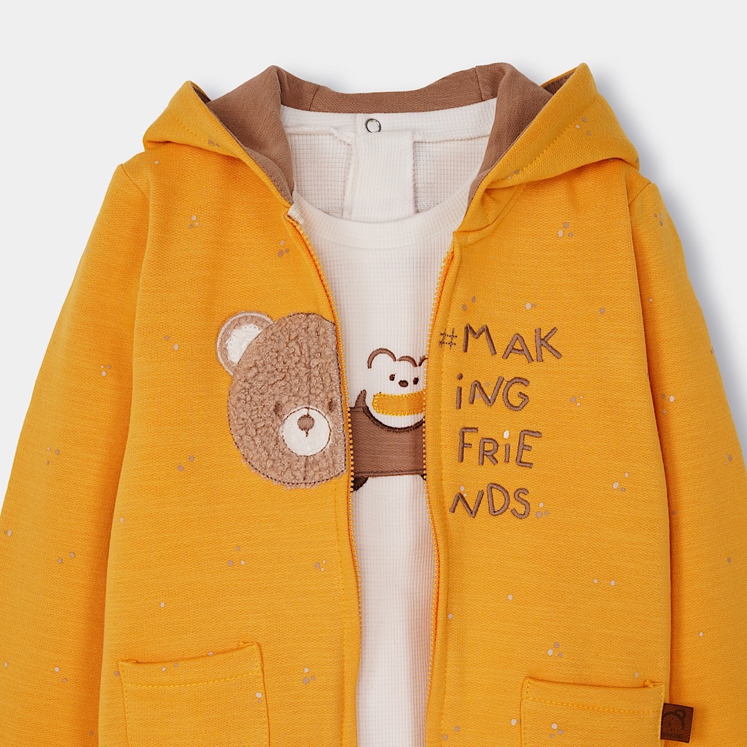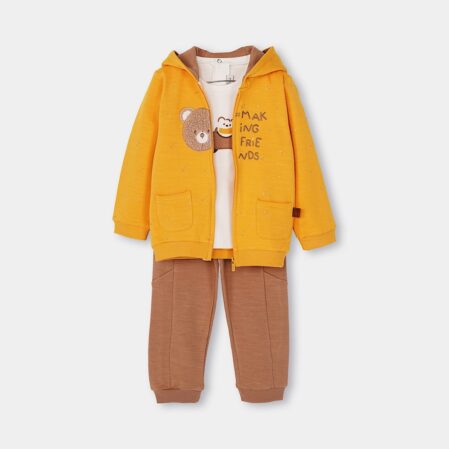 ست براونی پسرانه برند ایندیگو ترکیبی از سوئیشرت، بلوز و شلواره 🍫💙. این ست از نخ پنبه ۱۰۰٪ ساخته شده تا راحتی و سلامت پوست کودک تضمین بشه. طراحی خاص و جذابش برای استفاده روزانه عالیه.